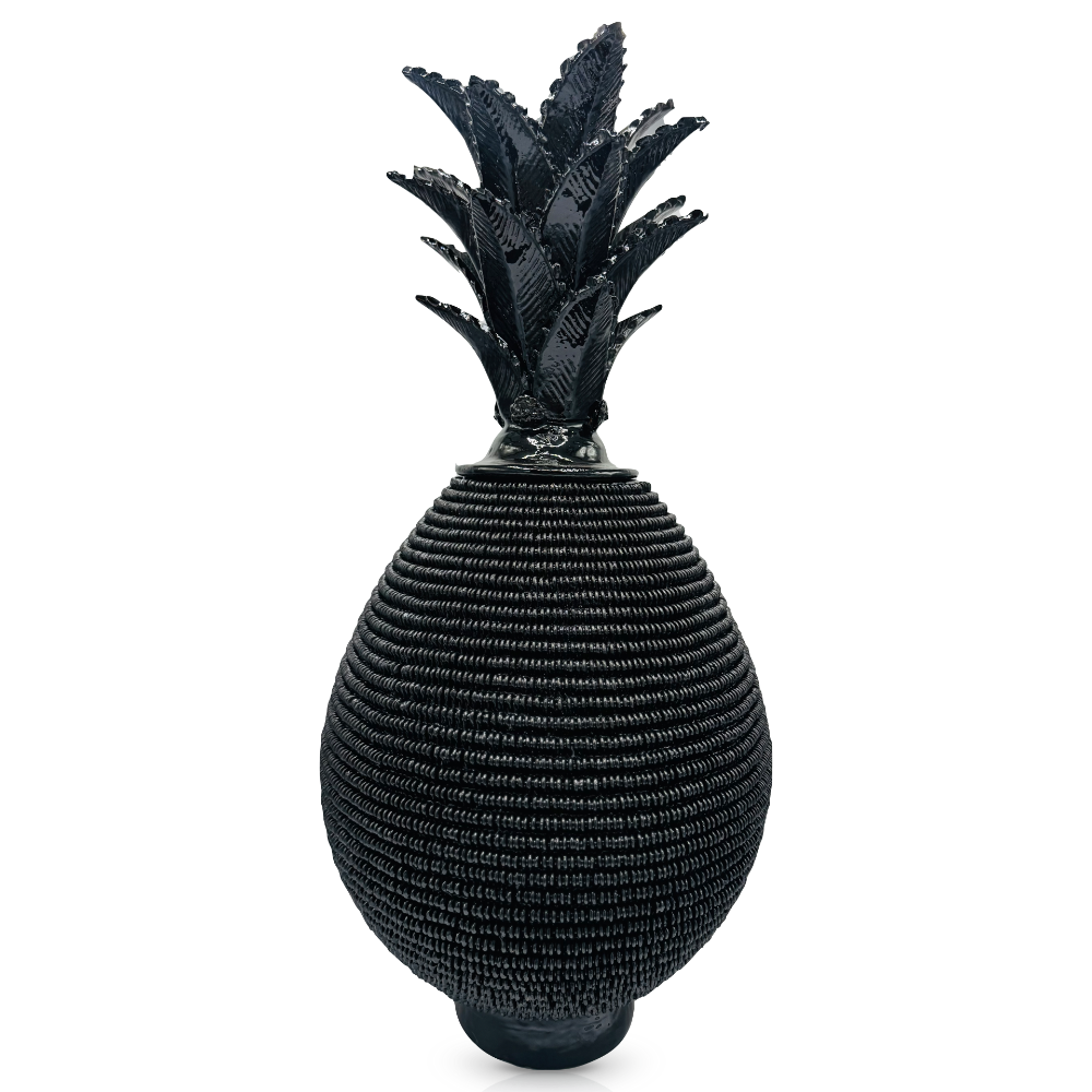 Esta piña decorativa está elaborada en barro vidriado, una técnica tradicional de Michoacán, es una pieza única que añade un toque artesanal y cultural a tus espacios.