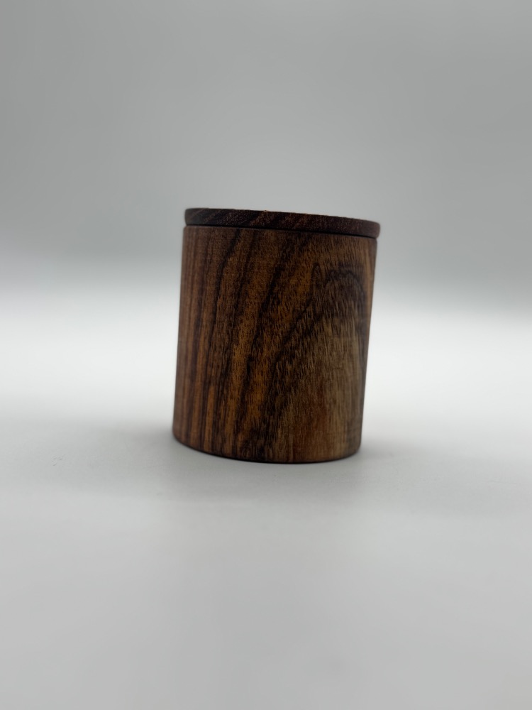 Este frasco con tapa está elaborado en madera de tzalam, una madera resistente y de alta calidad, hecho en Mérida, Yucatán, es ideal para almacenar pequeños objetos, especias o como un detalle decorativo en tu hogar.