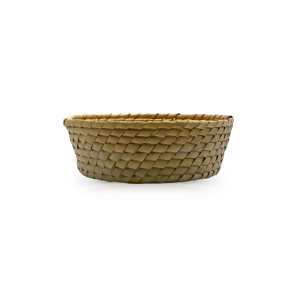 Canasto de palma natural tejido artesanalmente. Una pieza ligera y de diseño orgánico que aporta calidez a la cocina. Perfecto para organizar frutas, pan o como un detalle sencillo en cualquier superficie de la casa.