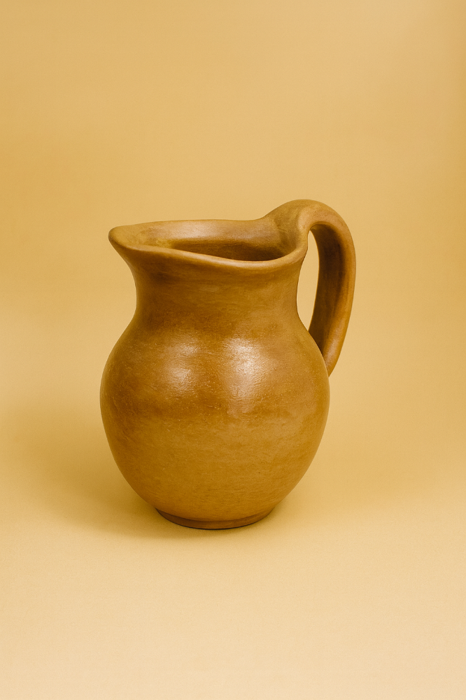 Esta jarra artesanal es una pieza única que combina tradición y funcionalidad, es ideal para servir bebidas o como una elegante pieza decorativa.