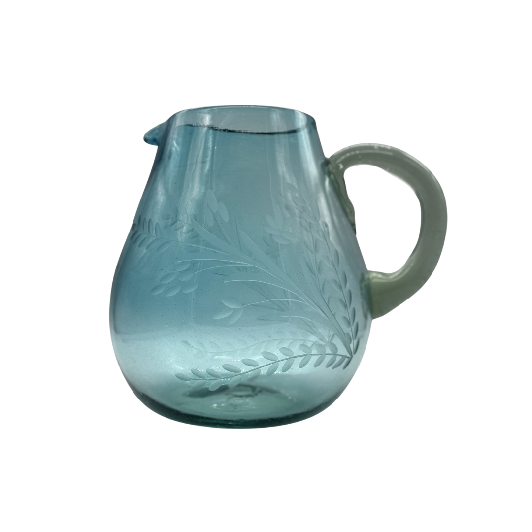 Esta jarra bola es una pieza única, elaborada artesanalmente con vidrio soplado y tallado a mano, combina funcionalidad y arte en un diseño sofisticado. Ideal para servir bebidas o como pieza decorativa, cada jarra es una obra de arte que añade un toque exclusivo a tu mesa o cocina.