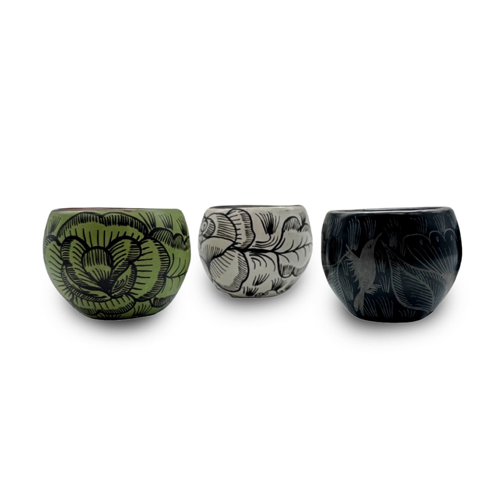 Este mezcalero de barro pintado es una pieza artesanal única, elaborada y pintada a mano por talentosos artesanos, combina funcionalidad y arte en un diseño lleno de color y tradición. Perfecto para servir mezcal, decorar tu bar o como regalo especial, cada mezcalero es una obra de arte que lleva el sello de la cultura mexicana. Las medidas pueden variar ligeramente debido a su elaboración manual.