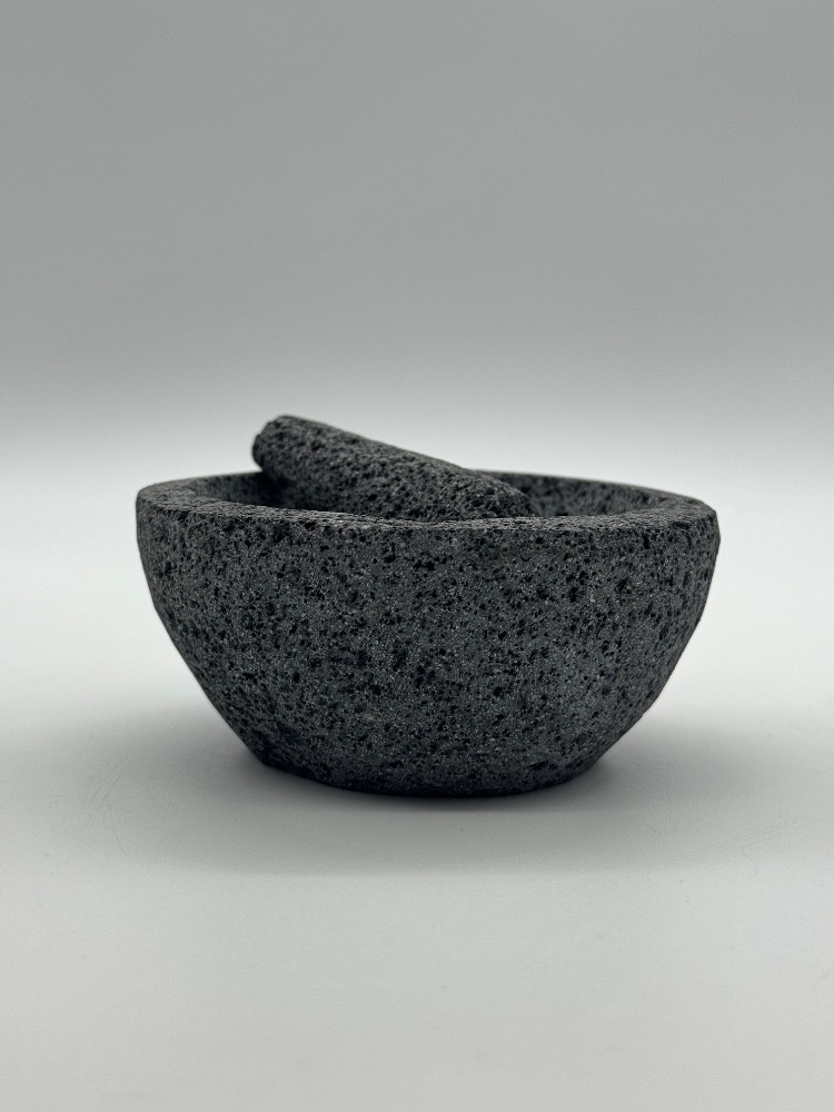 Este Mini Mortero de piedra volcánica es una pieza artesanal única y funcional. Tallado a mano en piedra volcánica, su diseño compacto y tradicional lo hace perfecto para moler especias, hierbas o preparar pequeñas porciones de salsas, es ideal para espacios pequeños o como pieza decorativa. Las medidas pueden variar ligeramente debido a su elaboración manual.