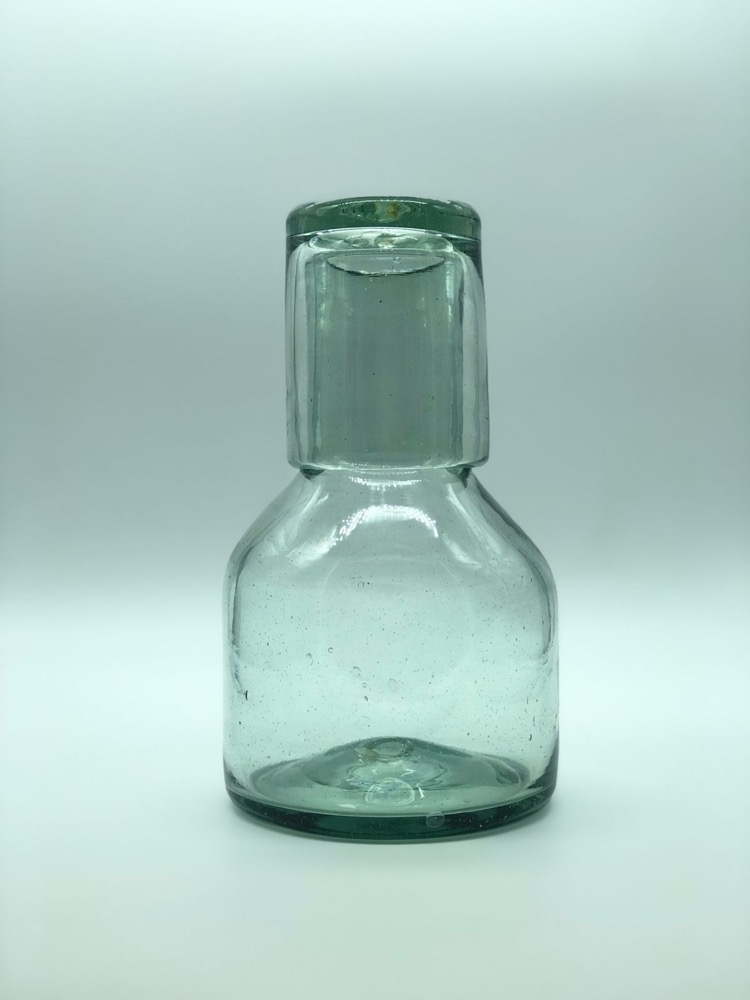 La Polka de vidrio soplado con vaso es una pieza artesanal única, elaborada a mano con técnica de vidrio soplado, es ideal para servir tus bebidas favoritas con estilo. Incluye un vaso que complementa su diseño sofisticado y funcional. Las medidas pueden variar ligeramente debido a su elaboración manual.