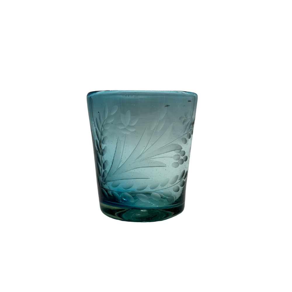 Este vaso es una pieza única, elaborada artesanalmente con vidrio soplado y tallado a mano, combina elegancia y artesanía en un diseño sofisticado. Perfecta para servir bebidas o como pieza decorativa, cada copa es una obra de arte que añade un toque exclusivo a tu mesa.